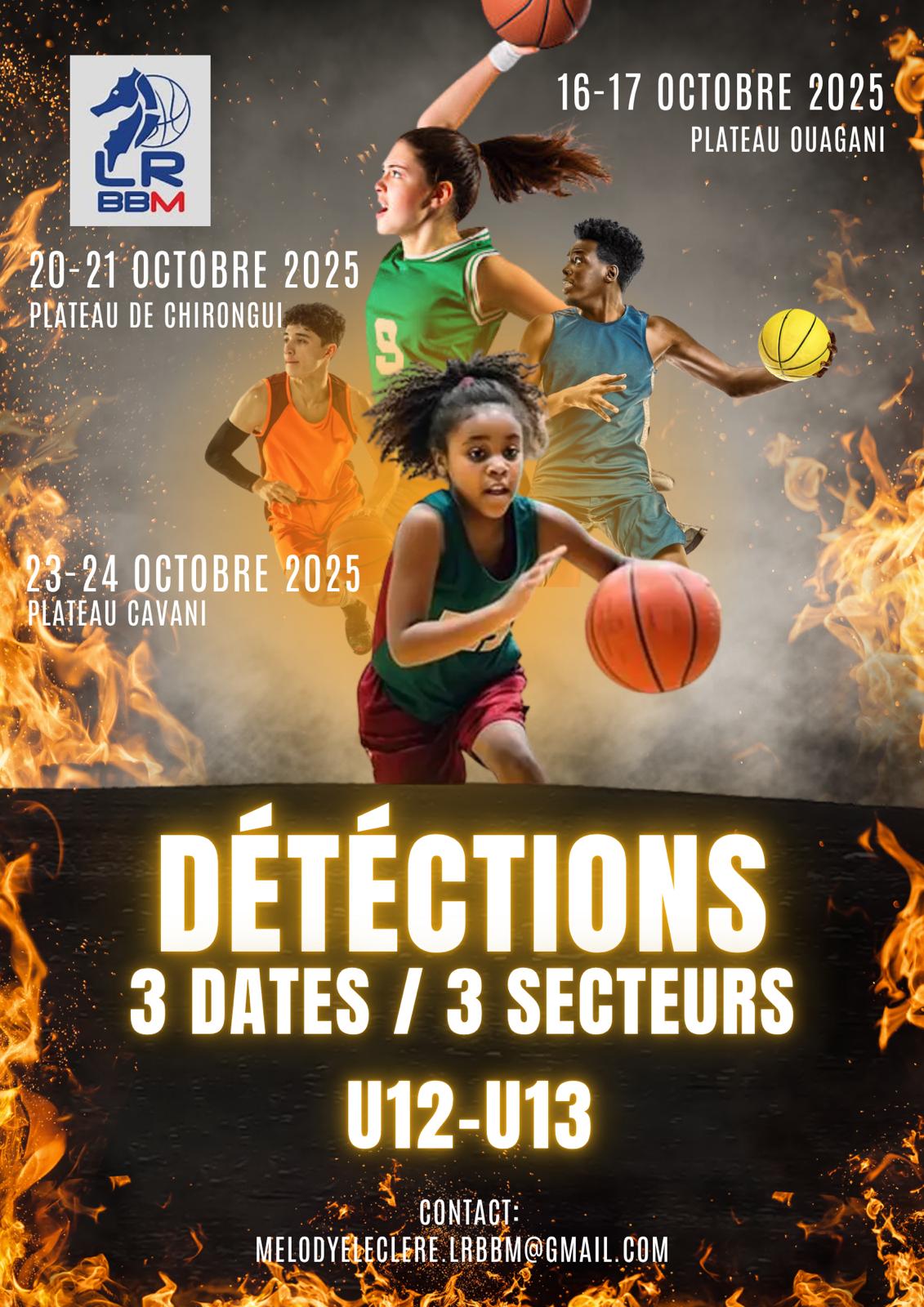 La Ligue Régionale de Basketball de Mayotte organise une session de détections U12–U13 sur 3 secteurs :